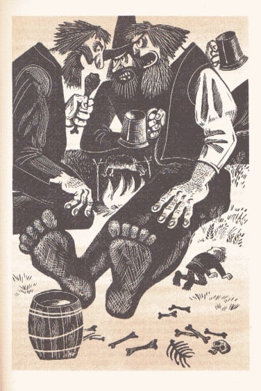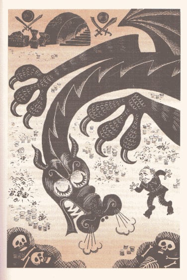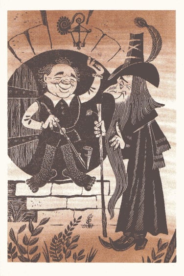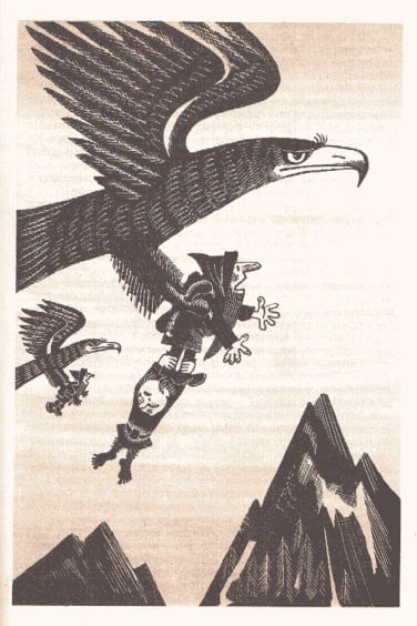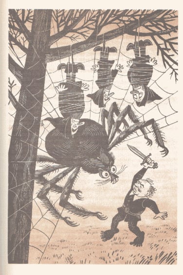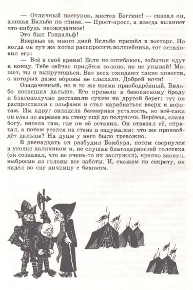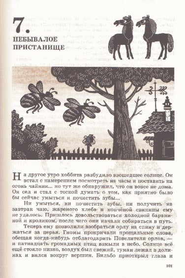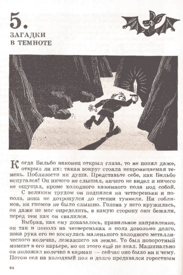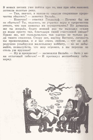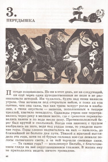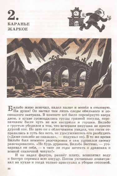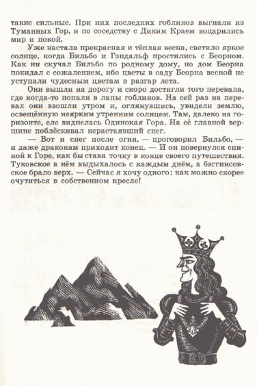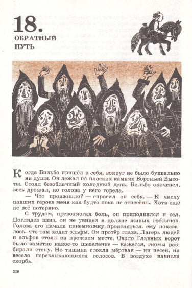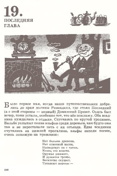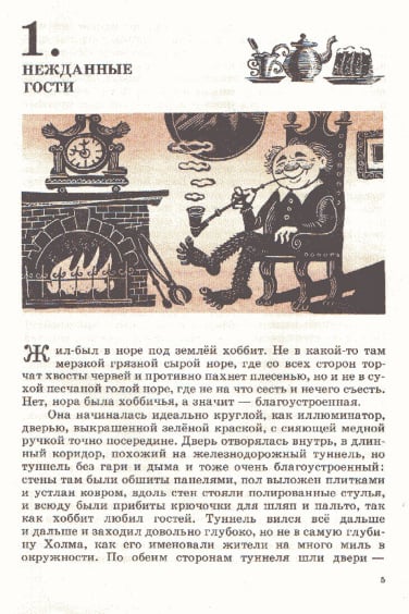 J.R.R. 托尔金的经典之作《指环王》前传《霍比特人》(又名《去而复返》)于 1937 年首次出版,目前已被翻译成 40 多种语言。除了不同的译本外,多年来还推出了数十种独特的儿童故事插图版本。这本 1976 年出版的苏联版《霍比特人》的插图由 M. Belomlinskij 绘制,描绘了比尔博、甘道夫、咕噜和史矛革的形象,风格既精确鲜明,又不失卡通魅力。